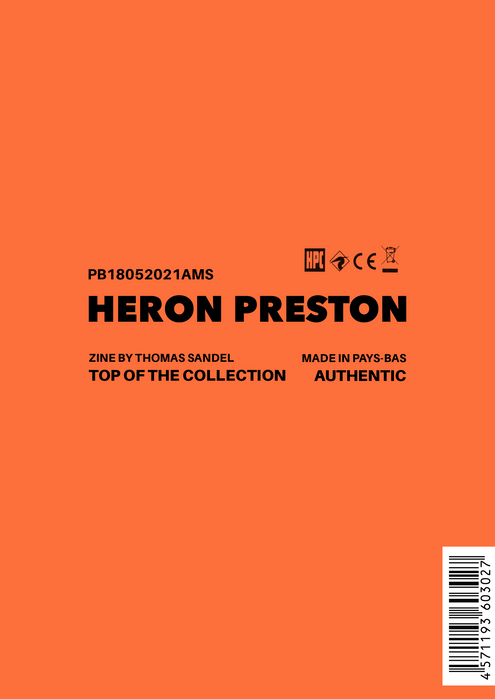 In opdracht van het Amsterdam Fashion Institute (AMFI) is de E-Zine genaamd 'Top Of The Collection' geproduceerd. Dit online magazine neemt de mensen mee door het beste werk van designer Heron Preston, aan de hand van grafische editorial.